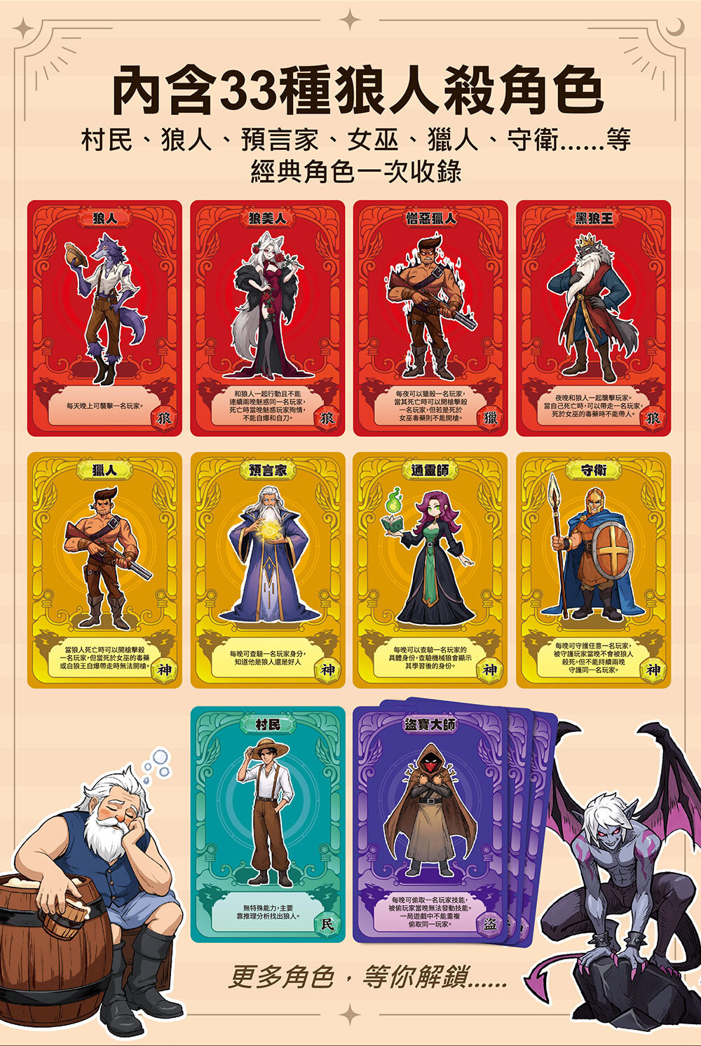 經典村民、狼人、預言家、女巫、獵人、守衛……等角色一次收錄