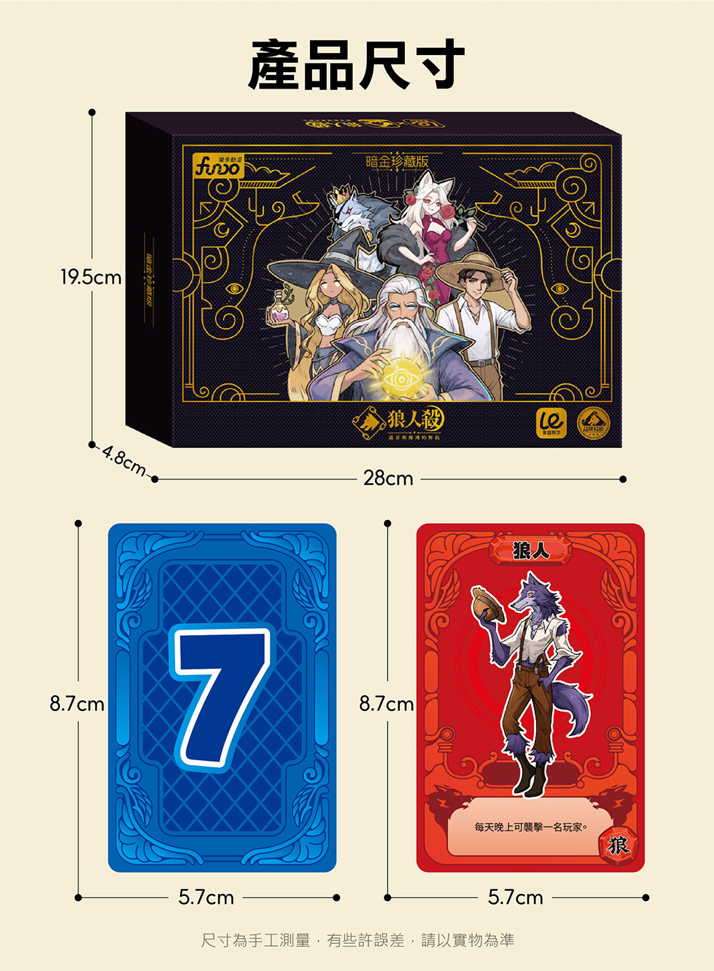 全套收錄多樣經典角色 ,提供豐富組合與多變玩法,搭配細緻印刷與收藏級卡牌設計,讓你在歡笑與燒腦之間,享受屬於《狼人殺》的每一刻。